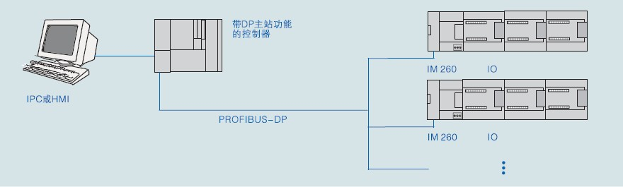 在使用IM260之前,需在軟件上安裝IM260相應(yīng)的GSD文件。IM 260模塊GSD名稱為“PROFIBUS-DP接口模塊(IM260)GSD文件”,您可在網(wǎng)址cwwwd.cn下載。通過IM260接口模塊,可以讓PROFIBUS-DP的網(wǎng)絡(luò)中的主站來遠(yuǎn)程操作UN200擴(kuò)展模塊的I/O口。通過IM260從站模塊的DP端口,可連接到PROFIBUS-DP網(wǎng)絡(luò)的DP主站上,與同一網(wǎng)絡(luò)上如315-2DP等其它DP主站進(jìn)行通信。下圖是一個(gè)IM260通訊的基本PROFIBUS-DP網(wǎng)絡(luò)圖。