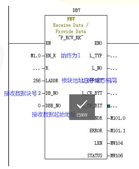 網(wǎng)絡(luò)4:與網(wǎng)絡(luò)3類似調(diào)用FB7模塊創(chuàng)建背景數(shù)據(jù)塊DB7,將接收的數(shù)據(jù)存放于DB2中。