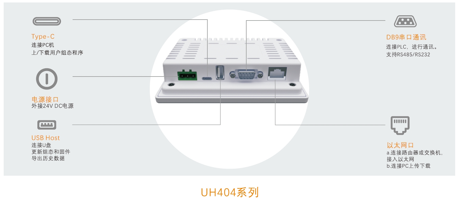 | USB Host | USB2.0 x 1,支持U盤更新固件、組態(tài)和存儲數(shù)據(jù) | |