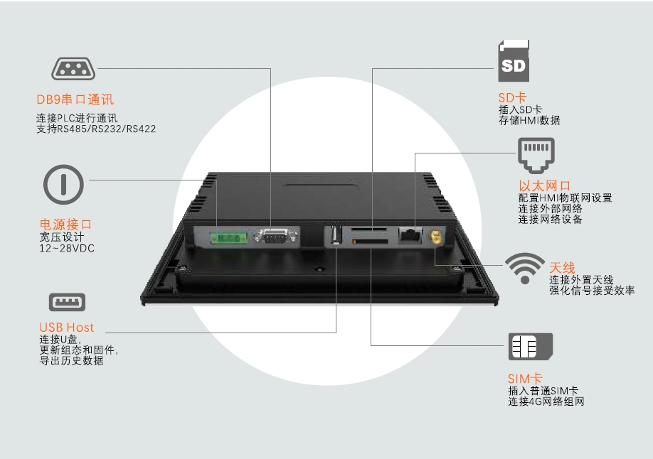 | USB Host | USB2.0 x 1, Type A(USB1),支持U盤更新固件、組態(tài)和存儲(chǔ)數(shù)據(jù) | ||